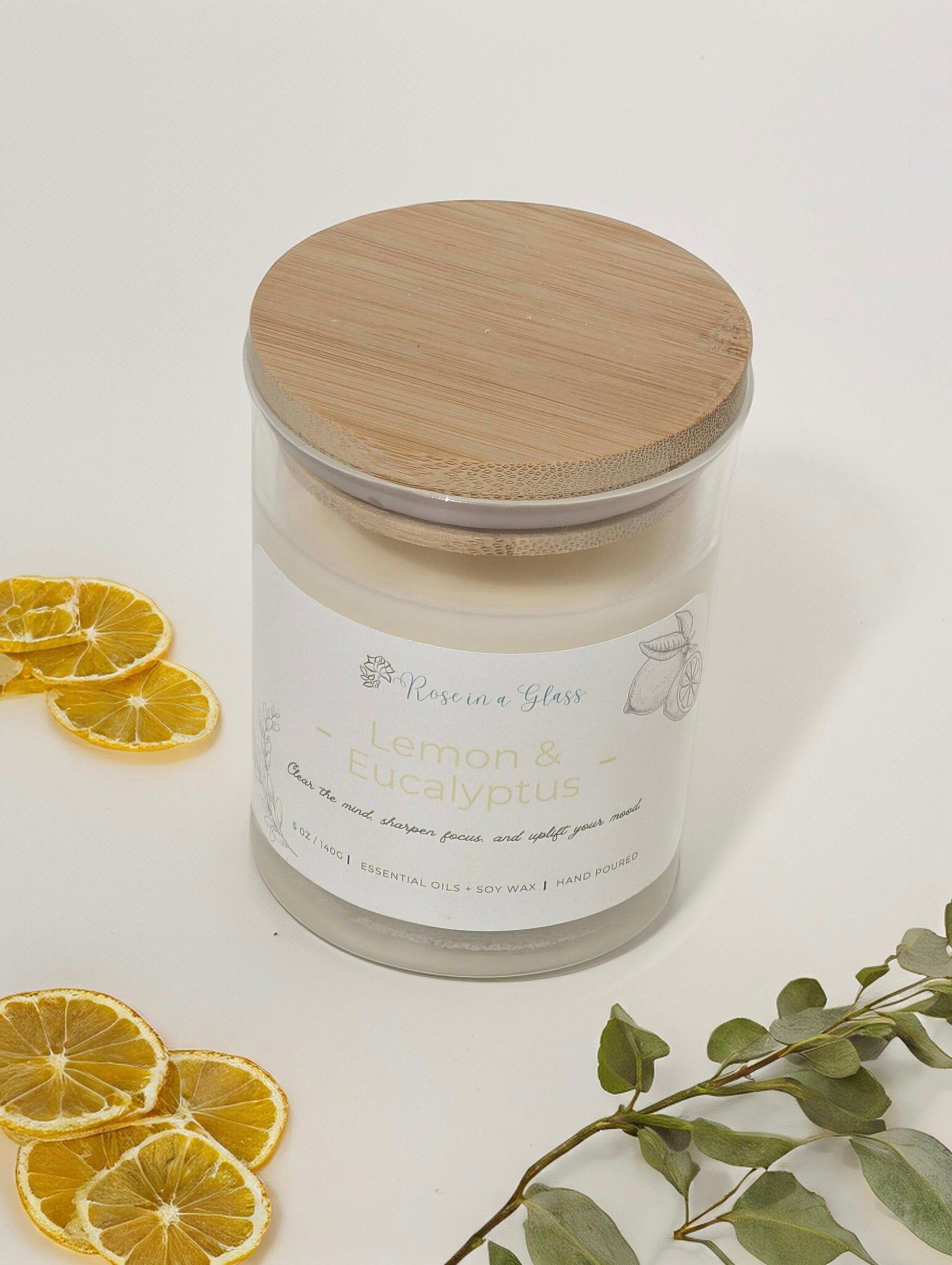 Clear your mind and uplift your mood with our Lemon & Eucalyptus natural candle. This hand-poured blend is thoughtfully crafted to fill your space with a crisp, focused, and energising fragrance, perfect for enhancing your work, study, or self-care routines.